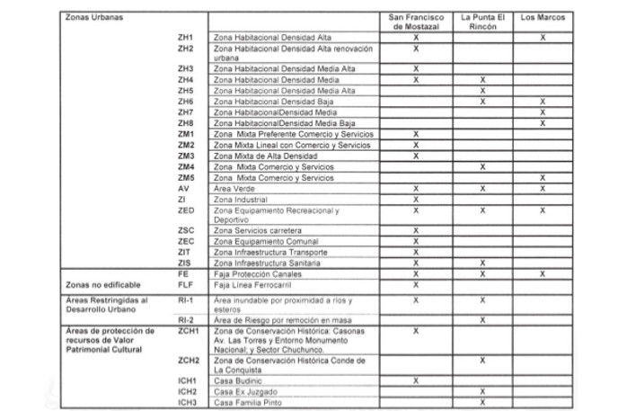 . ZIS: Zona de Infraestructura Sanitaria (San Francisco de Mostazal, La Punta - El Rincón)