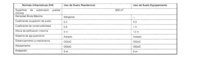 . ZH6: Zona Habitacional Densidad Baja (La Punta - El Rincón y Los Marcos)