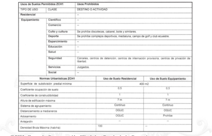 ZCH1: Zona de Conservación Histórica: Casonas Av. Las Torres y Entorno Monumento Nacional; y Sector Chuchunco