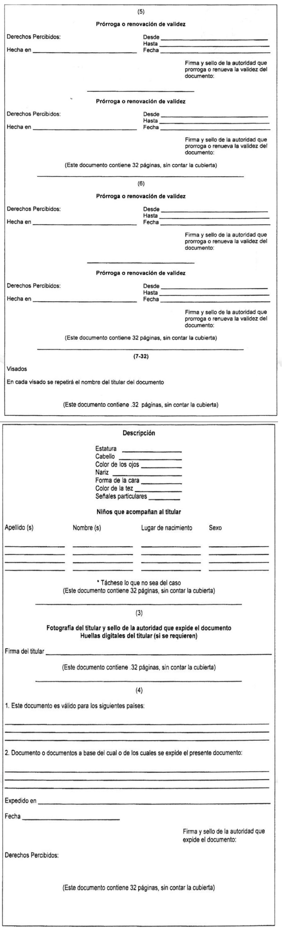 Se recomienda que el documento tenga la forma de una libreta (aproximadamente 15 x 10 centímetros), que sea impreso de manera tal que toda raspadura o alteración por medios químicos o de otra indole pueda fácilmente descubrirse, y que las palabras "Convención del 28 de septiembre de 1954" se impriman repetida y continuamente en cada página, en el idioma del país que expida el documento.