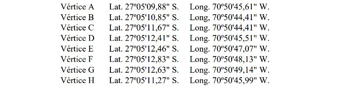 1.- Resolución Nº 1.915, del 13 de julio de 2018, del Ministerio de Defensa Nacional, Subsecretaría para las Fuerzas Armadas, otorgó a la Sra. Andreuvina Melinka Lancellotti Westhoff, chilena, RUT 10.926.155-6, con domicilio en Avda. Las Rocas I-16, Loreto, Caldera, concesión de acuicultura de porción de agua y fondo de mar y terreno de playa, solicitud 200031001, del 12 de enero de 2000, ubicada en Puerto Calderilla, al Norte y Noreste de Punta Este, comuna de Caldera, provincia de Copiapó, Región de Atacama, individualizada en la ubicación señalada en el Plano 107-2018-AC, visado por la Autoridad Marítima de Caldera.