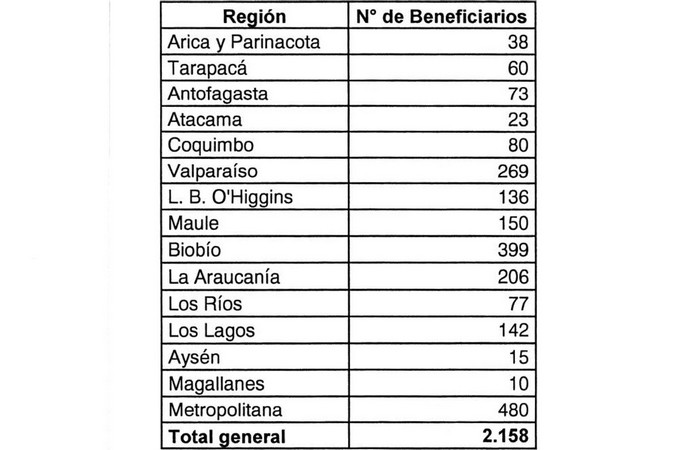 . 2. Apruébanse las nóminas de postulantes seleccionados correspondientes al mes de octubre de 2018, del llamado nacional dispuesto en el número 1 de la resolución exenta N° 2.962, de este Ministerio, de 2018, del Programa de Subsidio de Arriendo de Vivienda regulado por el DS N° 52 (V. y U.), de 2013 y en particular según lo establecido en su artículo 27, nóminas que se entenderán formar parte integrante de esta resolución, y fijase en 2.158 el número de postulantes seleccionados de todo el país, los que se distribuyen regionalmente de acuerdo a la siguiente tabla: