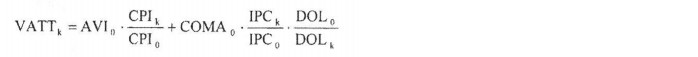 El subíndice 0 de la fórmula anterior corresponde al mes de adjudicación del Proyecto por parte del Coordinador. Los valores base de los índices se determinan de forma tal que al mes de la adjudicación, la aplicación de la fórmula de indexación para el AVI y COMA, dé como resultado el AVI y COMA que conforman el VATT adjudicado.