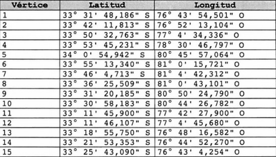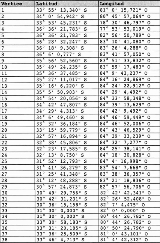 Artículo 6°. Límites. Los límites del Parque Marino, representados en el mapa adjunto, se detallan en coordenadas geográficas WGS 84, y son las siguientes: