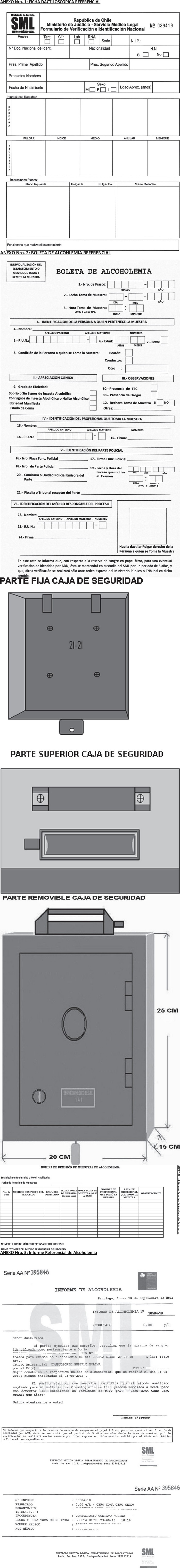 La llave y clave de la caja de seguridad estará sólo en poder de la persona encargada de la recepción de las muestras de Alcoholemia en el Laboratorio del Servicio Médico Legal que corresponda territorialmente.