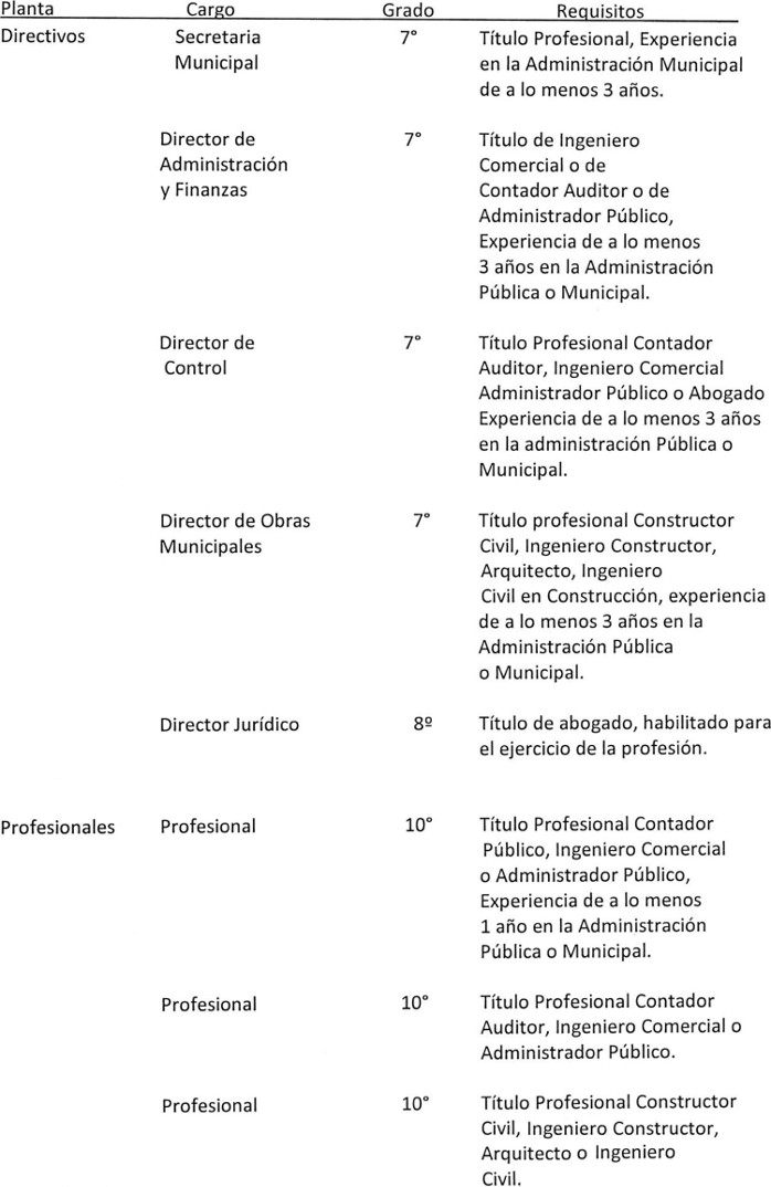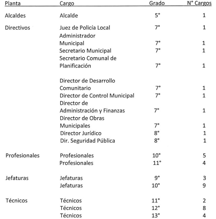 . Artículo 3º.- Fíjese la planta de personal de la Municipalidad de Requínoa: