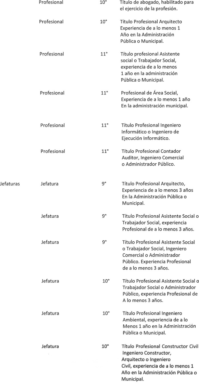 . Artículo 4º.- Fíjense los siguientes requisitos específicos para el desempeño de los cargos que se mencionan: