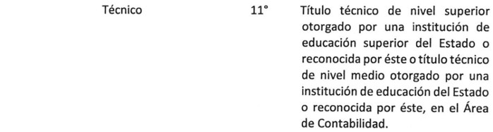 4) Plantas de Técnicos: Título técnico de nivel superior otorgado por una institución de educación superior del Estado o reconocida por éste, en el área que la municipalidad lo requiera; o, en su caso, título técnico de nivel medio, en el área que la municipalidad lo requiera, otorgado por una institución de educación del Estado o reconocida por éste; o haber aprobado, a lo menos, cuatro semestres de una carrera profesional impartida por una institución del Estado o reconocida por éste, en el área que la municipalidad lo requiera.