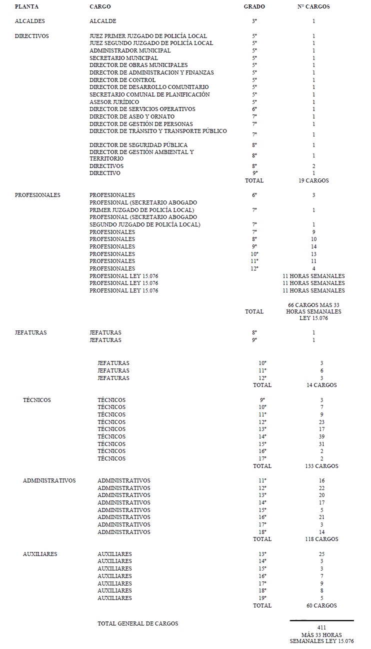 FIJA PLANTA DE PERSONAL DE MUNICIPALIDAD DE CURICÓ