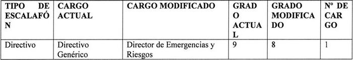 Tratándose de la "Dirección de Emergencias y Riesgos", se considera del todo pertinente proponer el aumento del grado asignado a dicho cargo Directivo, pasando de ser Directivo grado 9º a Directivo grado 8º de la escala de sueldos del sector.