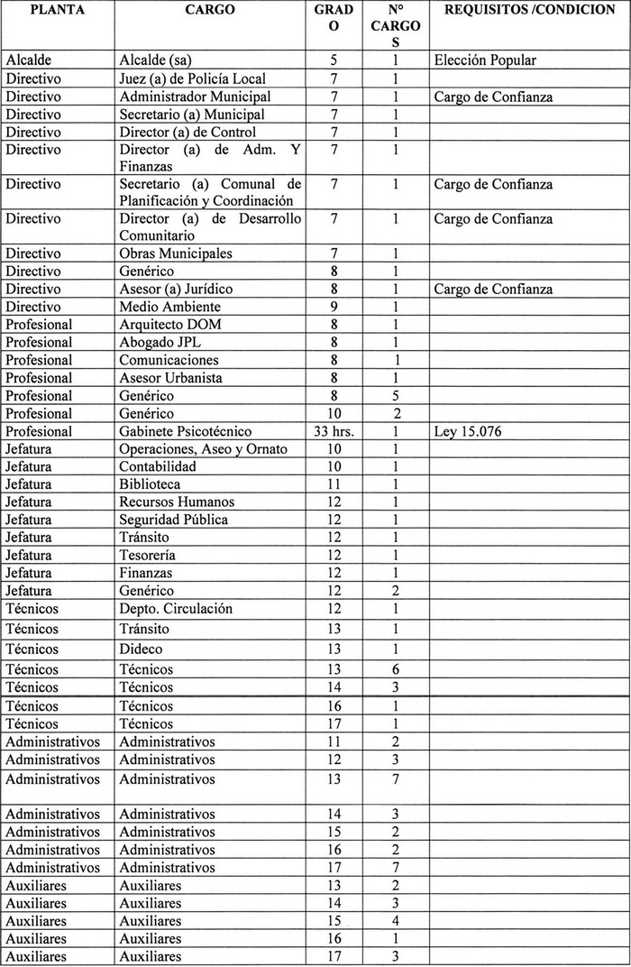 Artículo 4: Establézcase la Planta de Personal de la Ilustre Municipalidad de Diego de Almagro.