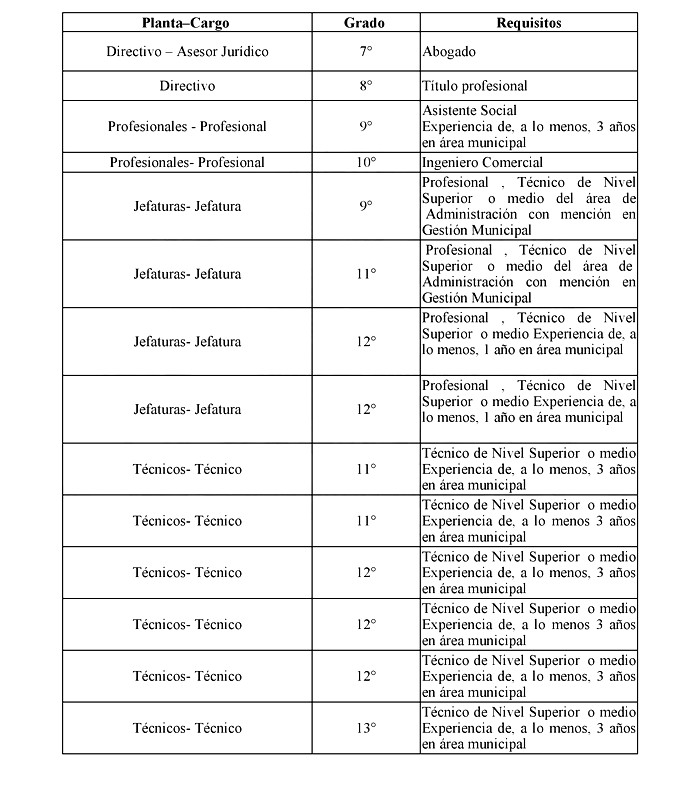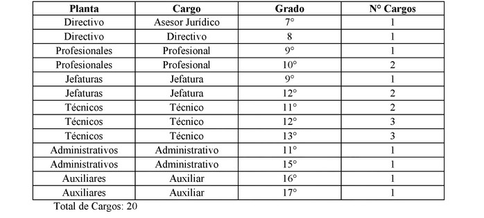 3. La necesidad de profesionalizar la dotación de personal, para lo cual se crean nuevos cargos en las plantas Directivos, Profesionales, Jefaturas y Técnicos.