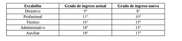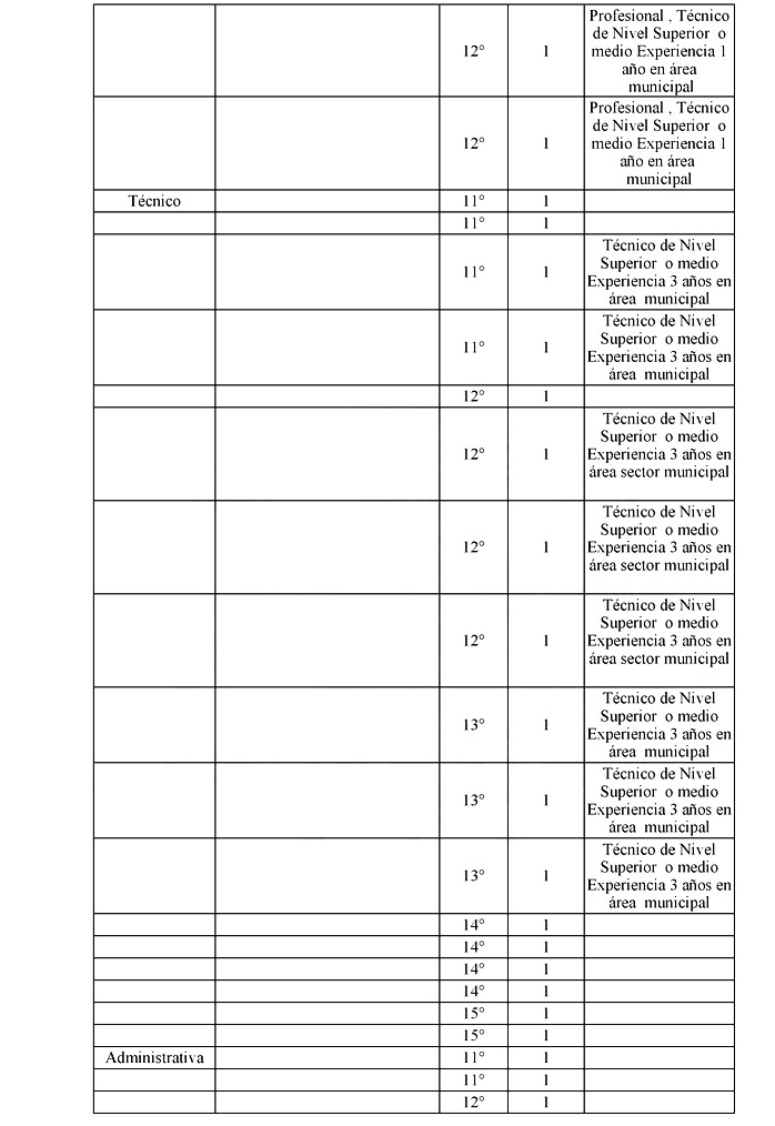 . Artículo 4º. Modifícase el grado de ingreso a la Planta de Personal de la Municipalidad de Coihueco, en los escalafones Directivo, Profesional, Técnico, Administrativo y Auxiliar, en la forma que a continuación se indica: