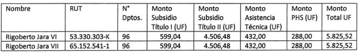 1. Decláranse de extrema relevancia los proyectos en los Condominios Rigoberto Jara VI y Rigoberto Jara VII, de la comuna de Quilicura, y asígnanse directamente subsidios del Programa de Protección del Patrimonio Familiar en su Título II, regulado por el DS Nº 255 (V. y U.), de 2006, en su modalidad regulada por el capítulo segundo, de la atención a Condominios de Viviendas Sociales, destinados a la atención de dichas comunidades de copropietarios, de acuerdo al siguiente detalle: