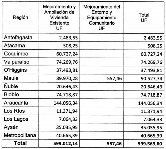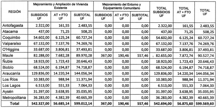 La distribución de los recursos que se comprometen para el número de familias que se detalla, es la siguiente: