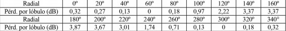 - Arreglo de antena de acuerdo a la siguiente tabla: