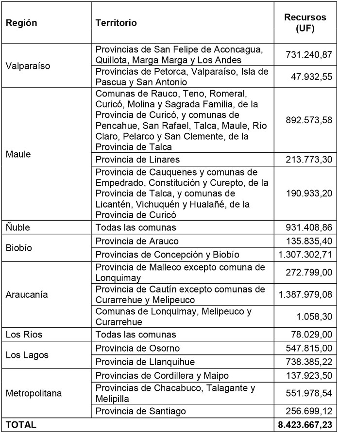 2. Los recursos involucrados para la selección de postulantes, por región, provincia y comuna convocada, son los siguientesResolución 1943 EXENTA,