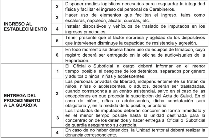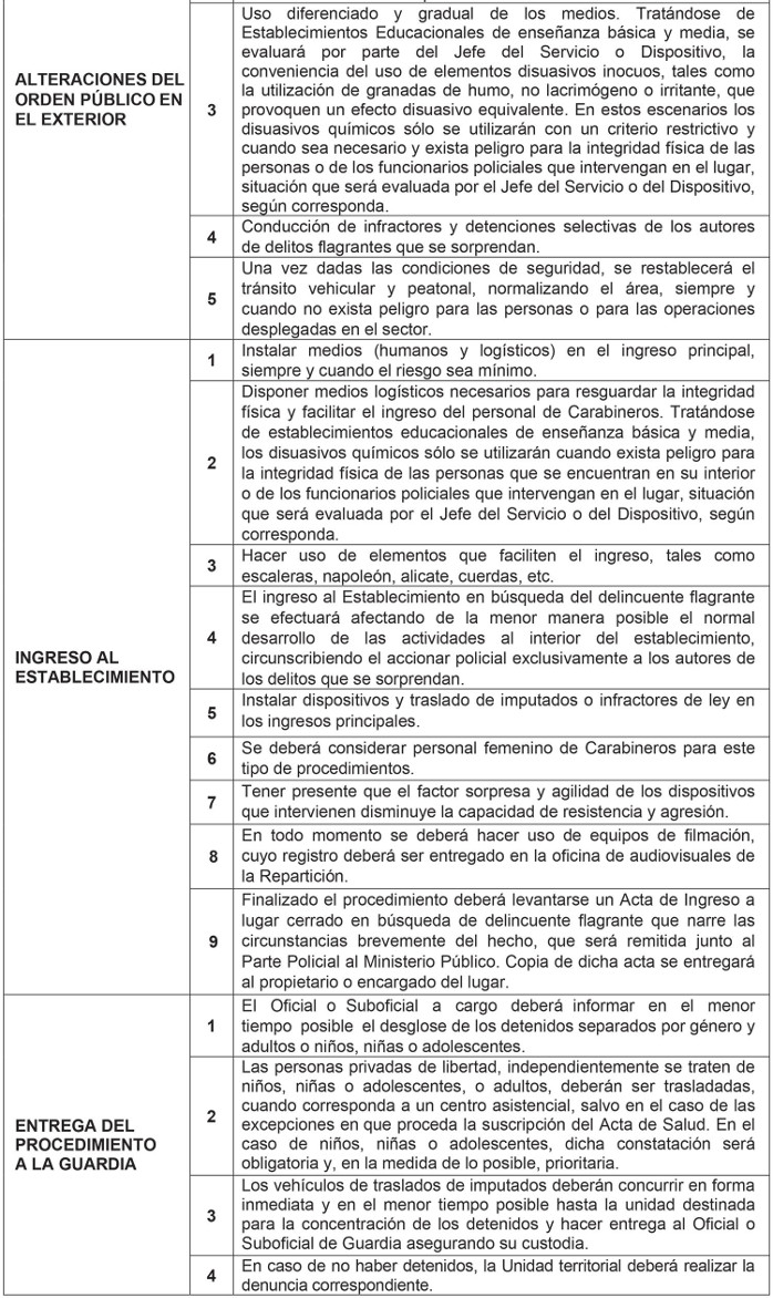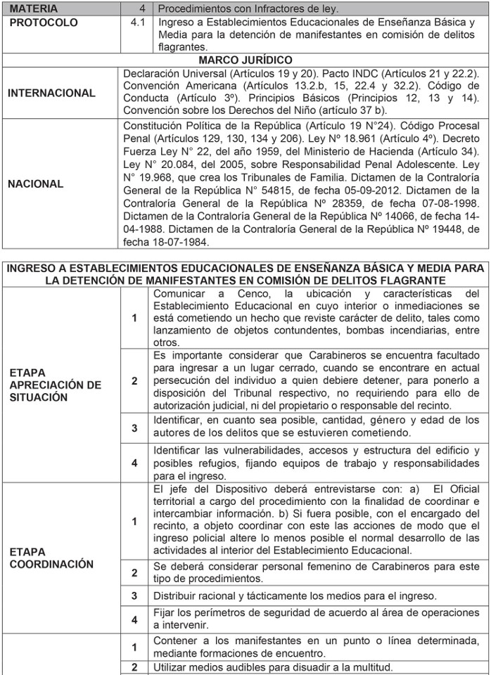 4.1 Ingreso a Establecimiento Educacional de Enseñanza Básica y Media para la detención de manifestantes en comisión de delitos flagrante.