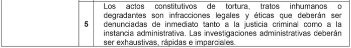 Principio de Responsabilidad: El uso de la fuerza fuera de los parámetros permitidos por la Ley, no sólo conlleva las responsabilidades individuales por las acciones y omisiones incurridas, sino también la responsabilidad de los mandos llamados a dictar órdenes, supervisar y/o controlar la legalidad, necesidad y proporcionalidad en el ejercicio de esta por parte de los subalternos.