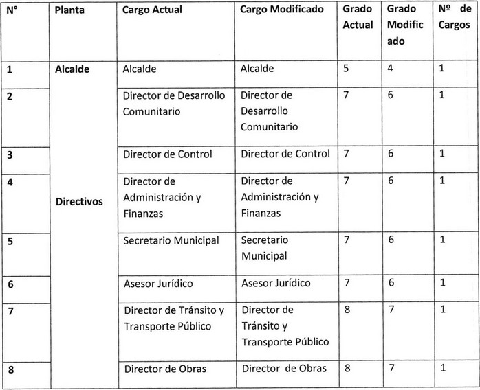 B.- Modifíquense los grados de los cargos que se indican: