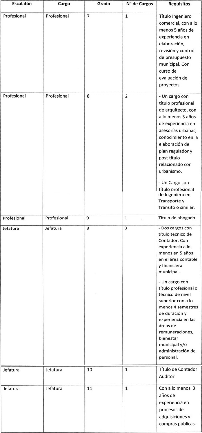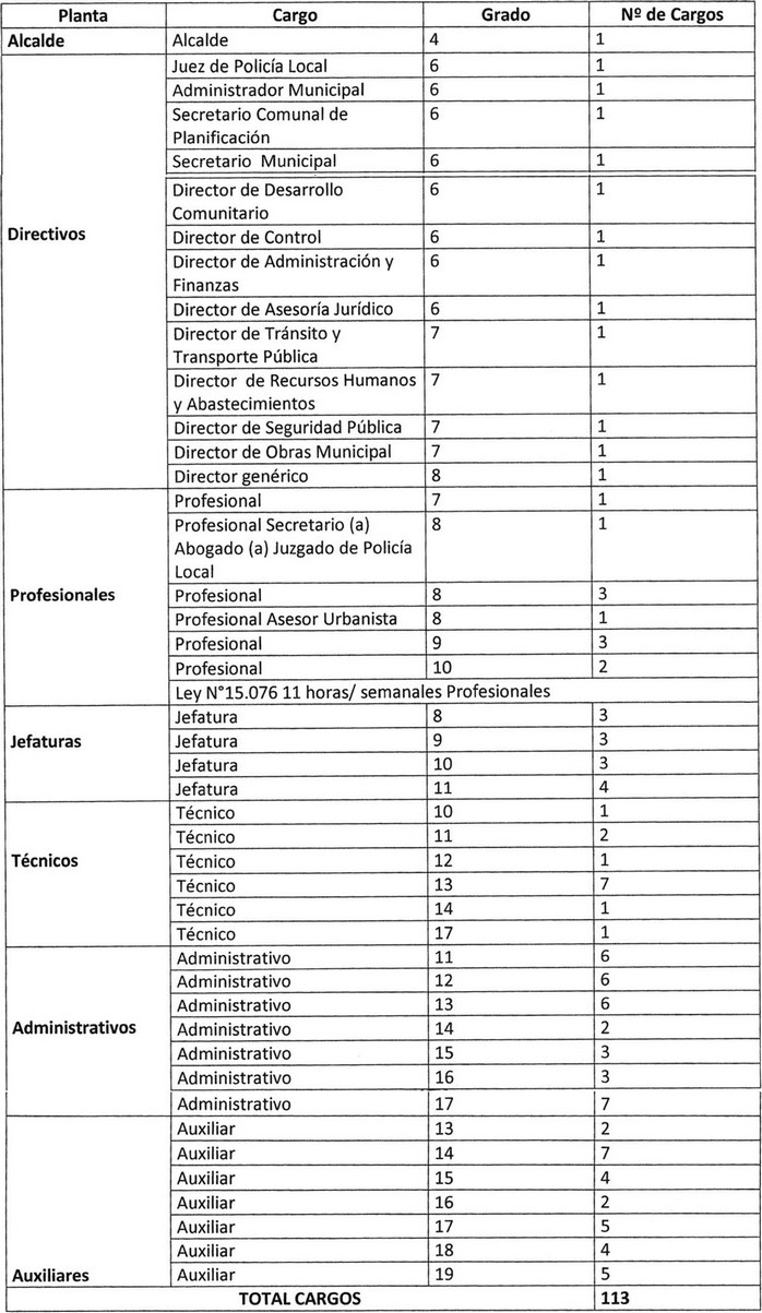 Artículo 2°.- Fíjese la planta de personal de la Municipalidad de La Calera.