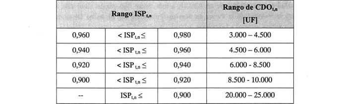xxi) De acuerdo a lo establecido en los artículos 2.4.2 y 2.4.7.5 de las Bases de Licitación, se considera que el Nivel de Servicio de la Concesión es suficiente en todos aquellos casos en que el Índice de Servicio Prestado (ISP) de cada trimestre es superior al valor de 0,980 (98,0%) e insuficiente en todos aquellos casos en que el ISP de cada trimestre es inferior o igual al valor de 0,980 (98,0%). En estos casos, el Concesionario deberá pagar al MOP un costo por el desempeño operacional insuficiente (CDOt,n), que se determinará de acuerdo a los rangos que se establecen en la Tabla siguiente: