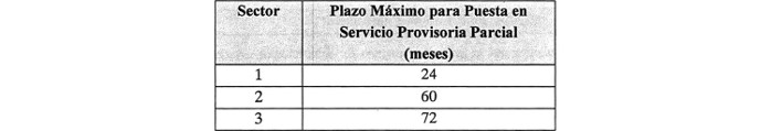 Tabla: Plazo máximo para la Puesta en Servicio Provisoria Parcial de las Obras de cada uno de los Sectores del Proyecto