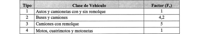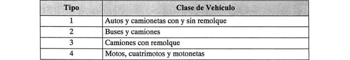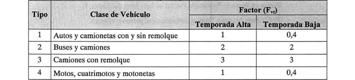 Tabla: Factor de Tarifas por Tipo de Vehículo Peaje Lateral (1)