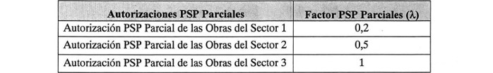 De conformidad con lo establecido en el artículo 1.14.5 de las Bases de Licitación, para efectos del cobro de tarifas en el punto de cobro troncal ubicado en el Subsector 1C, además del Factor por Tipo de Vehículos indicado en la Tabla "Factores de Tarifas por Tipo de Vehículo Peaje Troncal", la Sociedad Concesionaria deberá considerar el Factor por Autorización de Puesta en Servicio Provisoria Parcial de las Obras, según se indica en la Tabla siguiente: