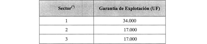 El valor total de cada Garantía de Explotación por Sector se indica en la Tabla siguiente: