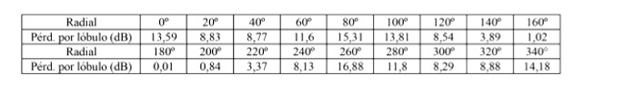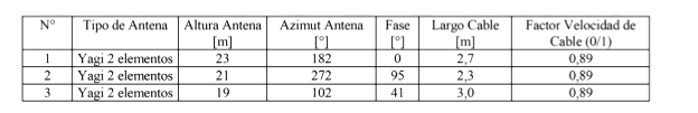 - Arreglo de Antenas de acuerdo a la siguiente tabla: