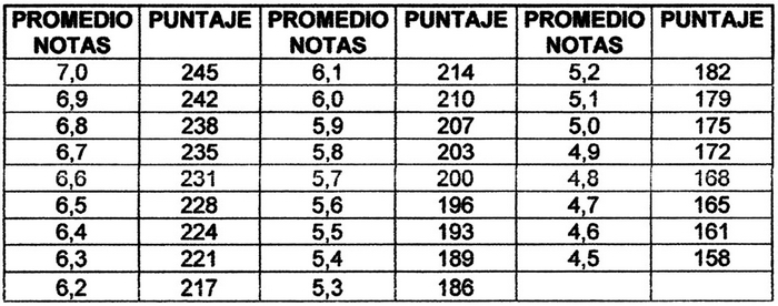 Los puntajes están previamente ponderados en los porcentajes señalados en los cuadros, por lo tanto sólo se debe proceder a la suma de los puntajes presentados por los postulantes.