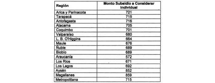 10. El monto a considerar para la aplicación del subsidio será determinado por los valores promedio que a continuación se indican: