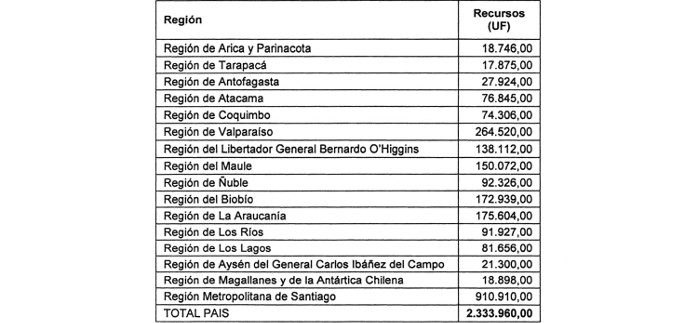 5. Los recursos dispuestos para la selección de postulantes, por Región del país, son los siguientesResolución 1975 EXENTA,