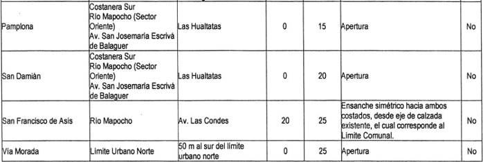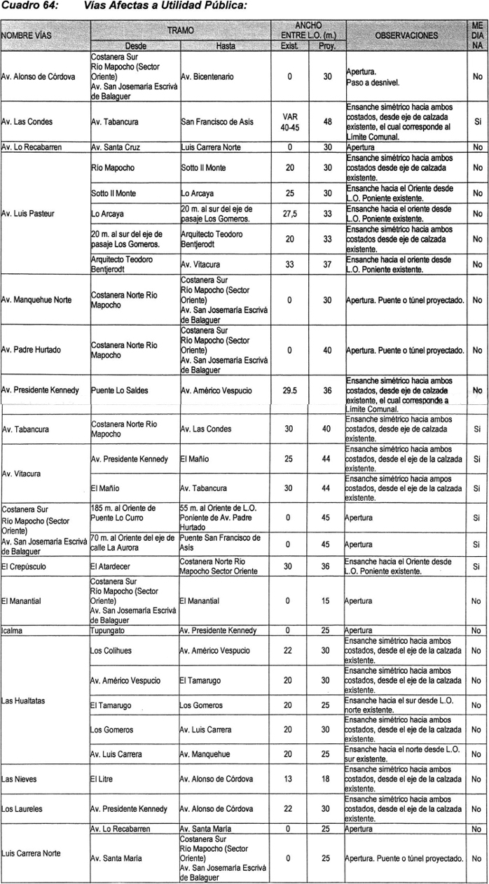 Los terrenos destinados a circulaciones afectas a declaratorias a utilidad pública de conformidad al artículo 59 de la Ley General de Urbanismo y Construcciones, incluyendo aquellas definidas por el Sistema Vial Metropolitano, en el área de aplicación de la presente Ordenanza, son las siguientes:
