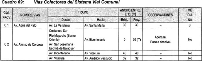 . La Vialidad del Área Urbana Comunal regida por el presente Plan Regulador, está constituida por el conjunto de avenidas, calles y caminos existentes o proyectados, que conforman el Sistema Vial Metropolitano, clasificados como Vías Expresas y Troncales por el Plan Regulador Metropolitano de Santiago y aquellas que conforman el Sistema Vial Comunal, clasificadas por el Plan Regulador Comunal como Vías Colectoras, Locales y Pasajes, señaladas como tales en la presente Ordenanza.