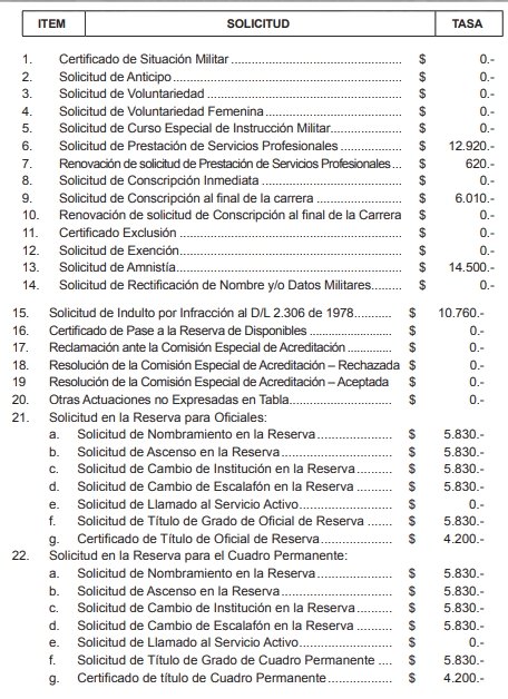 FIJA TASAS DE DERECHOS A SOLICITUDES Y ACTUACIONES DEL D.L. N° 2.306, DE 1978, QUE DICTA NORMAS SOBRE RECLUTAMIENTO Y MOVILIZACIÓN DE LAS FUERZAS ARMADAS