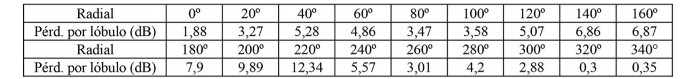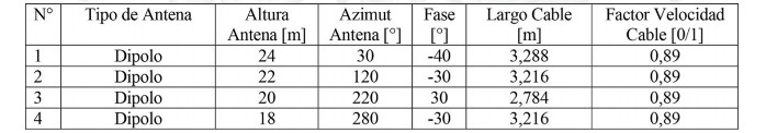 - Arreglo de antenas de acuerdo a la siguiente tabla: