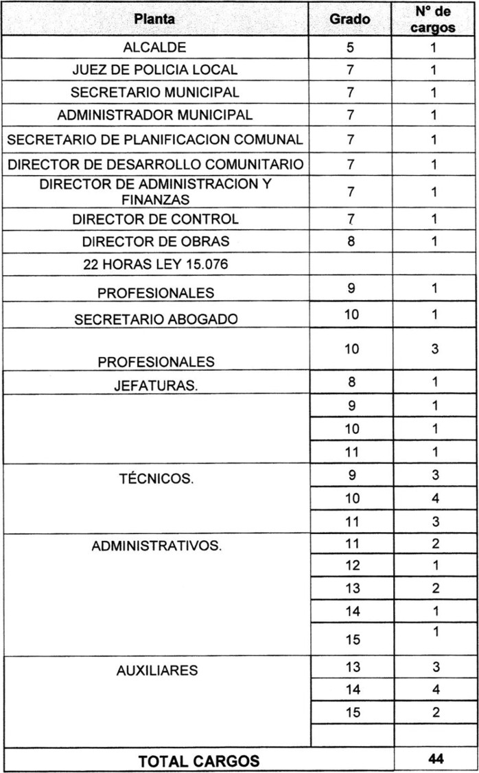 n) Ley 20.033 artículo 7º.- Reemplácense, en las correspondientes plantas de personal municipal, los actuales grados 7 asignados a alcaldes, por grados 6, modificándose de pleno derecho, para tal efecto, los respectivos decretos con fuerza de ley, lo establecido en el presente artículo no implicará, en caso alguno, una modificación en la adscripción de los restantes grados de las escalas de personal de las respectivas municipalidades.