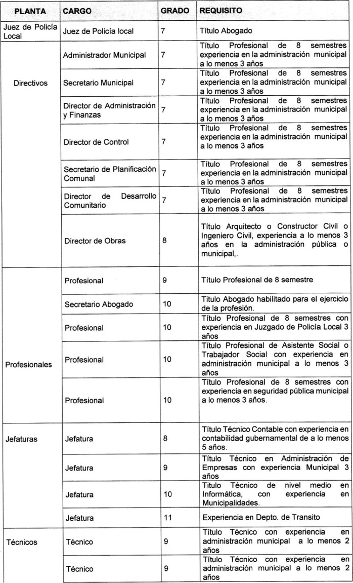 No obstante, es necesario precisar que de acuerdo a lo dispuesto en el artículo 5º de la ley Nº 15.231, el juez de policía local deberá tener el grado máximo del escalafón municipal respectivo, lo que en concordancia con el dictamen Nº 27.144, de 2018, corresponde a un cargo directivo, y no como se establece en el resuelvo cuarto del instrumento en análisis.