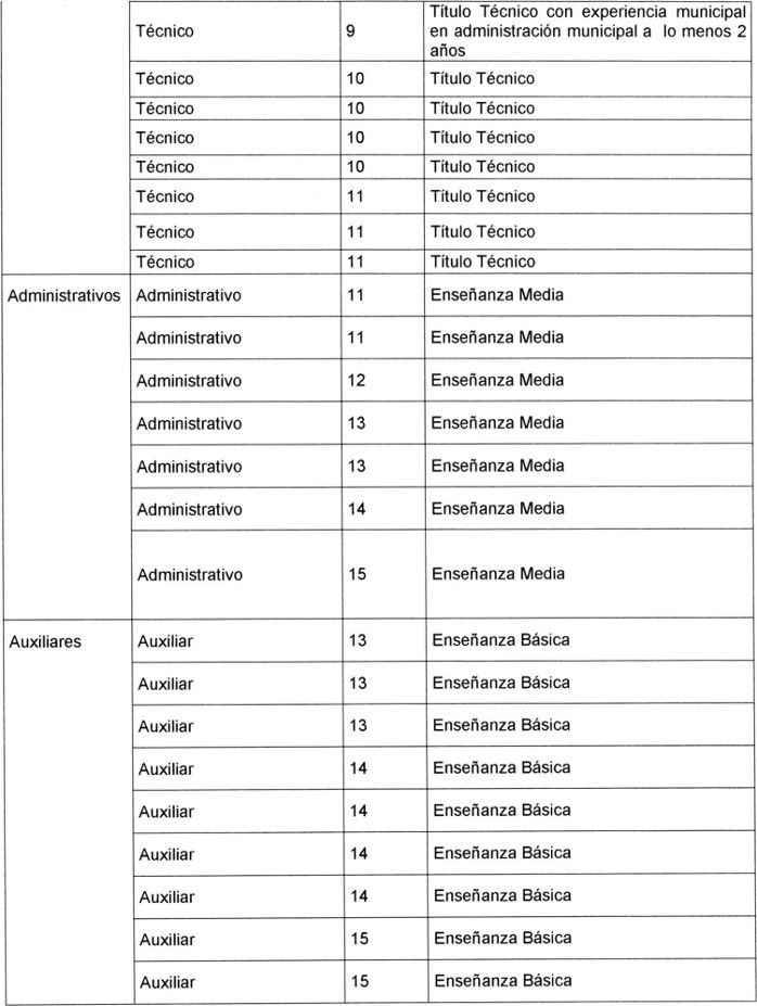 ee) Asimismo, se ha dado cumplimiento a lo dispuesto en los artículos 15º y siguientes de la ley 18.883, en el sentido de respetar la carrera funcionaria, ya que se contempla en las plantas de directivos, jefaturas, profesionales, técnicos, administrativos y auxiliares, existan distintos grados que permitan el ingreso en el último grado de la respectiva planta y con ello se concreta la posibilidad de ascender a las personas acorde a sus méritos.