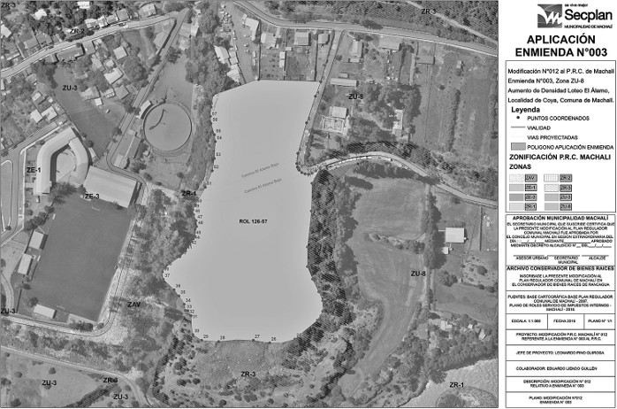 7. Remítase copia del decreto alcaldicio, cuadro artículo 4.1-64 Zona: ZU-8 y sus condiciones especiales incorporadas y la Lámina de Enmienda Nº 03, Plano N°1/1 de la Enmienda N° 03, Modificación N° 012 del PRC de Machalí, "Zona ZU-8, Aumento de Densidad Loteo El Álamo - Localidad de Coya", a la Seremi de Vivienda y Urbanismo para su archivo.-