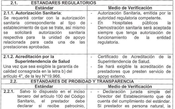 . II. ESTÁNDARES ESPECÍFICOS DE APROBACIÓN DE PRESTADORES: