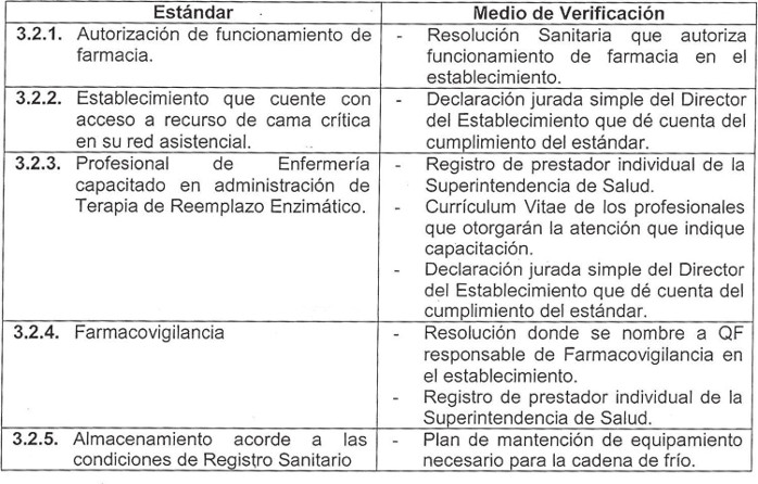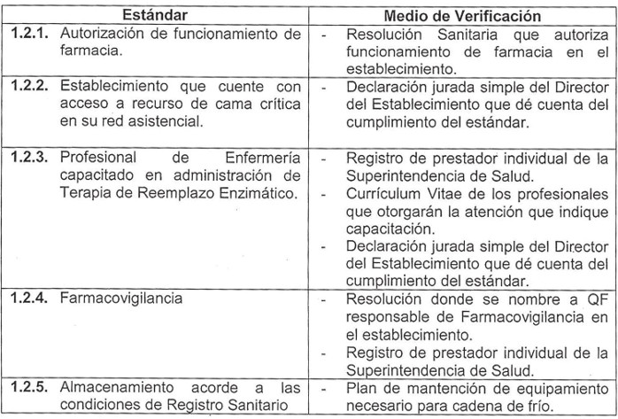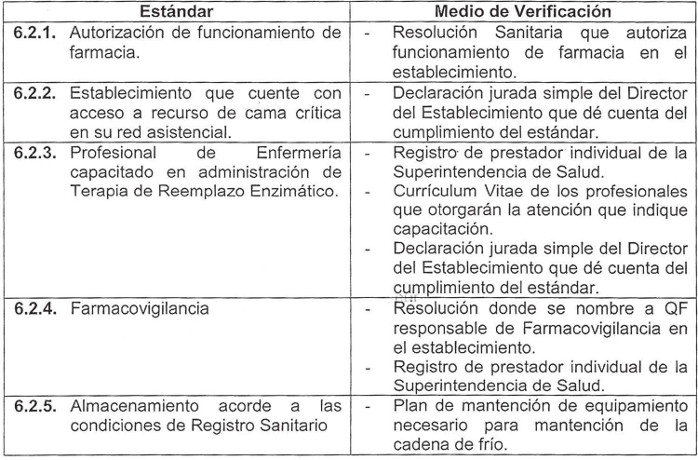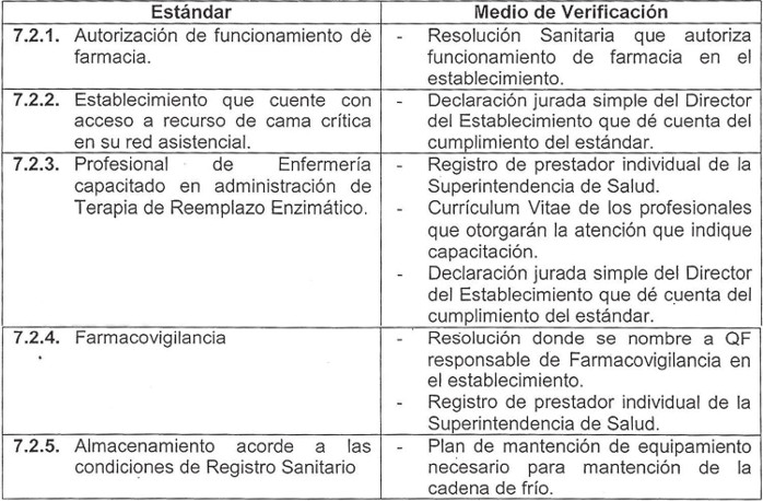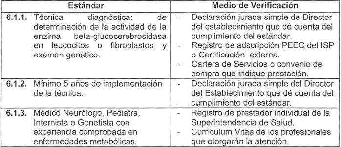 . 6. Estándares especiales para el tratamiento basado en Taliglucerasa o Imiglucerasa, para la enfermedad de Gaucher.