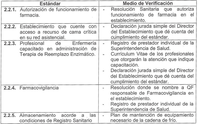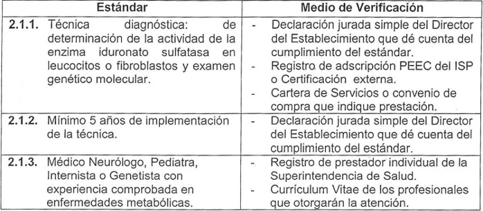 . 2. Estándares para el Tratamiento basado en Idursulfasa, para la enfermedad de Mucopolisacaridosis Tipo II.