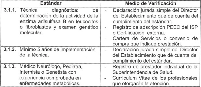 . 3. Estándares para el Tratamiento basado en Galsulfasa, para la enfermedad de Mucopolisacaridosis Tipo VI.