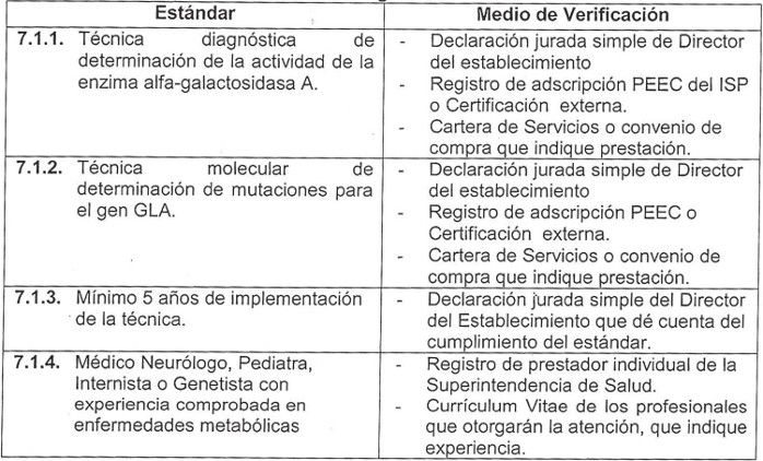 . 7. Estándares especiales para el tratamiento basado en Agalsidasa, para la enfermedad de Fabry: