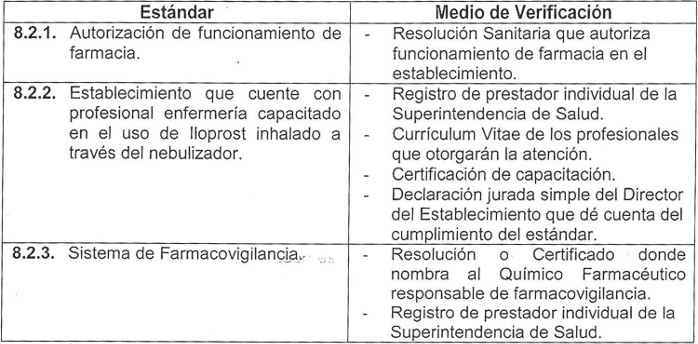 . 8. Estándares especiales para el tratamiento basado en Iloprost inhalatorio,Ambrisentan o Bosentan, para la Hipertensión Arterial Pulmonar Grupo I.