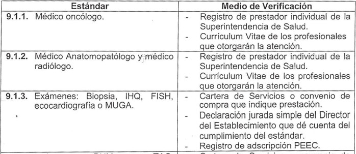 . 9. Estándares especiales para el tratamiento basado en Trastuzumab para el Cáncer de Mamas que sobreexprese el gen HER2.