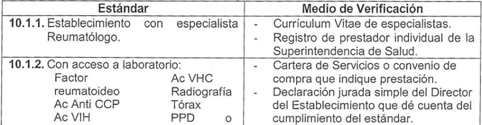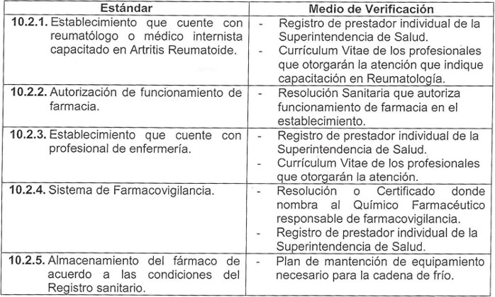 . 10. Estándares para el Tratamiento basado en Abatacept o Etanercept o Adalimumab o Golimumab o Tocilizumab o Tofacitinib o Rituximab, para la enfermedad de Artritis Reumatoide Refractaria a Tratamiento Habitual.